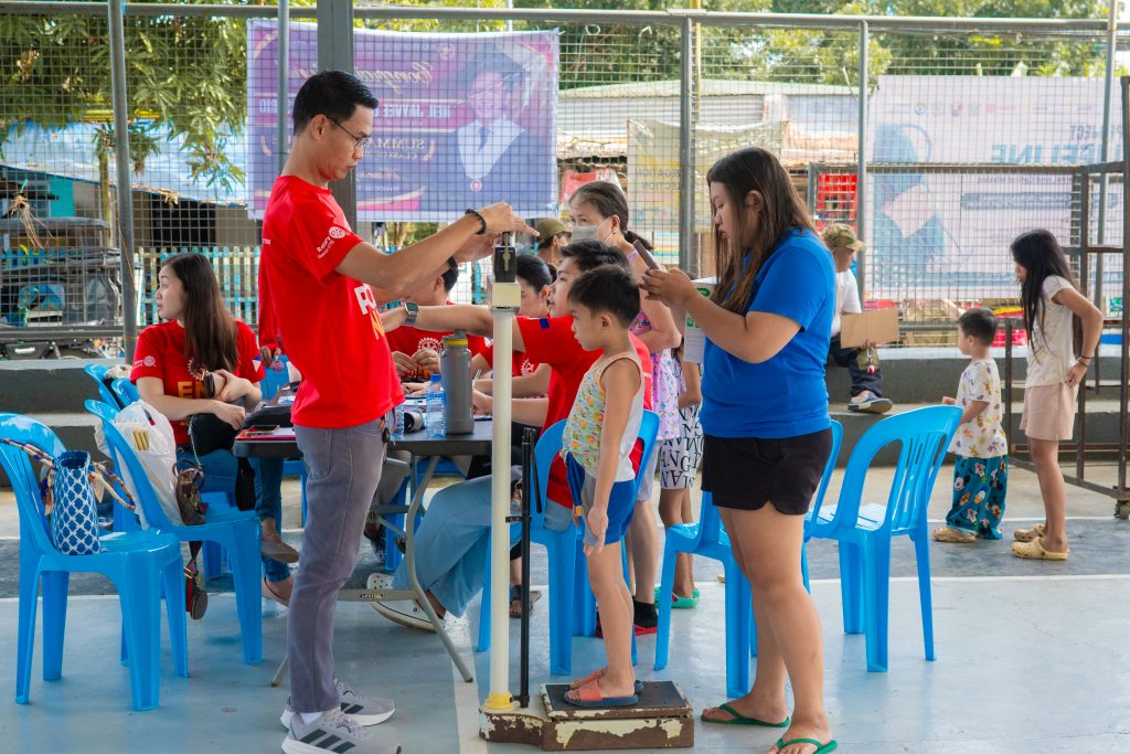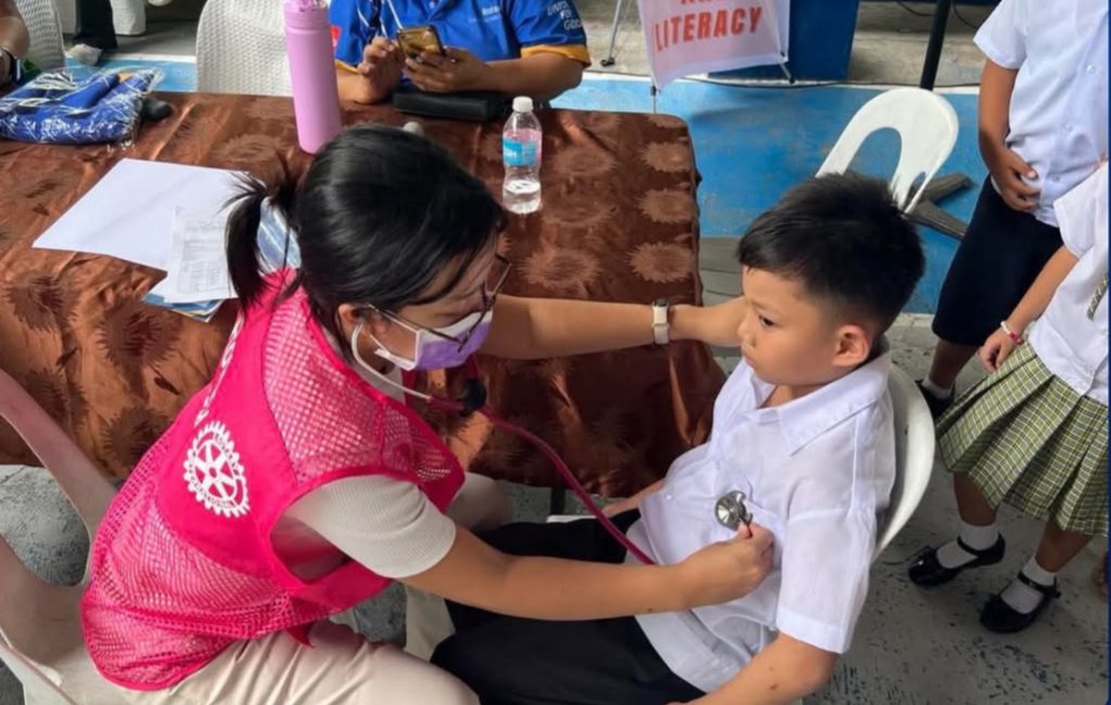 RAC San Pablo City Rotaractors doing physical examination on Grade 1 students of San