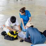 Rotaractor Louis demonstrating how to perform CPR.
