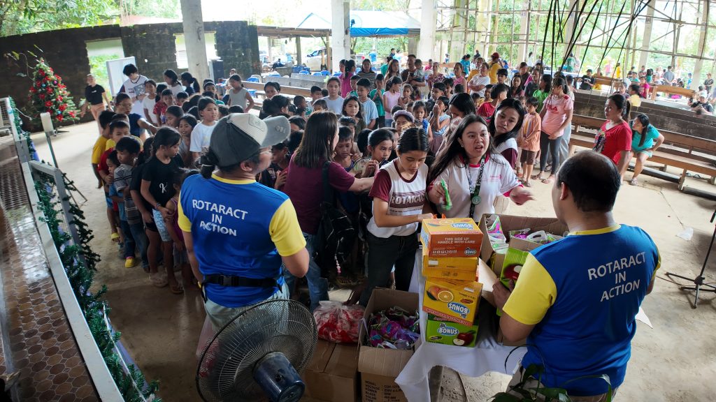Inside the modest barangay chapel, something extraordinary unfolded through the initiative “Bangon, Sugbo: One Last Wave, One Shared Christmas.” Led by the Rotaract Club of Cebu Fuente together with the Rotaract Club of Cebu Fuente – USC and the Rotaract Club of Cebu Fuente – UV Chapter, in strong collaboration with the Rotary Club of Cebu Fuente, the gathering became more than a relief operation. It became a shared moment of humanity.